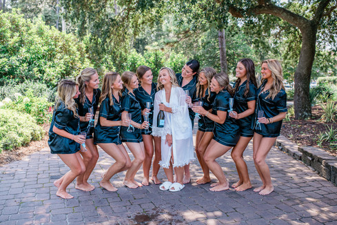 Morgan accompanied by her Meredith sorority sisters, her 2 cousins and honoraries. JohnBrooks had his father Mr. Edmondson as his best man, his two brother and his fraternity brother alongside him. A first touch was shared by the couple prior to ceremony, they privately read their vows. Morgan also, had a first look with her girls and her dad, Mr. Tinger and her only brother. Gifts were exchanged - It was pretty emotional. While Morgan was getting ready her mother helped her into her gorgeous gown, that carried a lovely bow in the lower of her back.