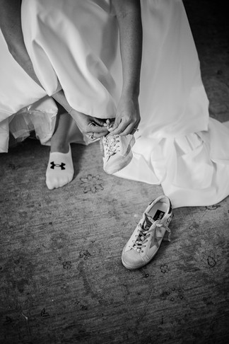 No super fancy heels, but instead her monogrammed Golden Goose sneakers - She was ready to really cut-a-rug to celebrate!