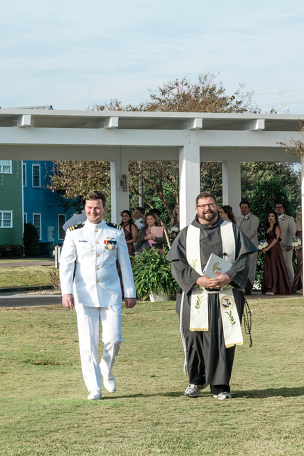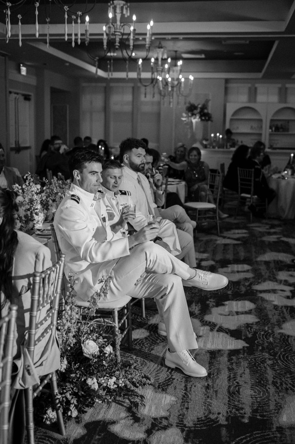 Saturday’s events flowed seamlessly, with the ceremony outside the chapel followed by a sit-down dinner. The hotel’s catering team impressed everyone with delicious dishes that complemented the elegant setting. The Marlin Room provided a warm, inviting space for the reception, where guests shared stories, laughter, and dancing.